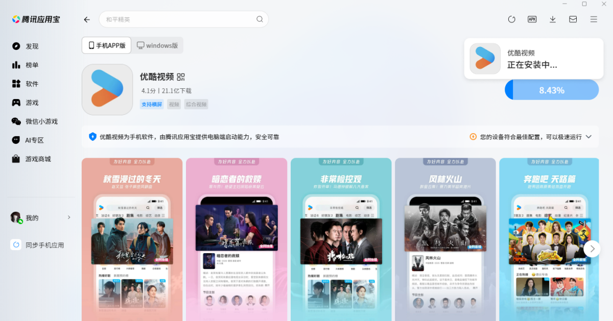 在极极下载站下载最新安装包,按提示先安装应用宝电脑版(已安装会直接调用打开,未安装应用宝时,手机APP无法独立在电脑上运行),应用宝安装完成后,进入应用宝,继续等待软件安装,完成之后登录账户即可开始使用