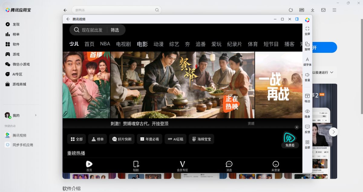 腾讯视频是一款由腾讯公司推出的在线视频播放平台,拥有海量正版高清影视内容,涵盖了电影、电视剧、综艺、动漫、纪录片等多种类型。不仅如此,腾讯视频还提供了极致流畅的播放体验、多端互通的追剧模式、智能化的内容推荐等贴心功能,带给用户全方位的视听盛宴。无论是追剧达人,还是电影爱好者,腾讯视频都是你不二的选择。即刻开启你的视界之旅,尽情徜徉在光影世界的奇妙境地吧!
