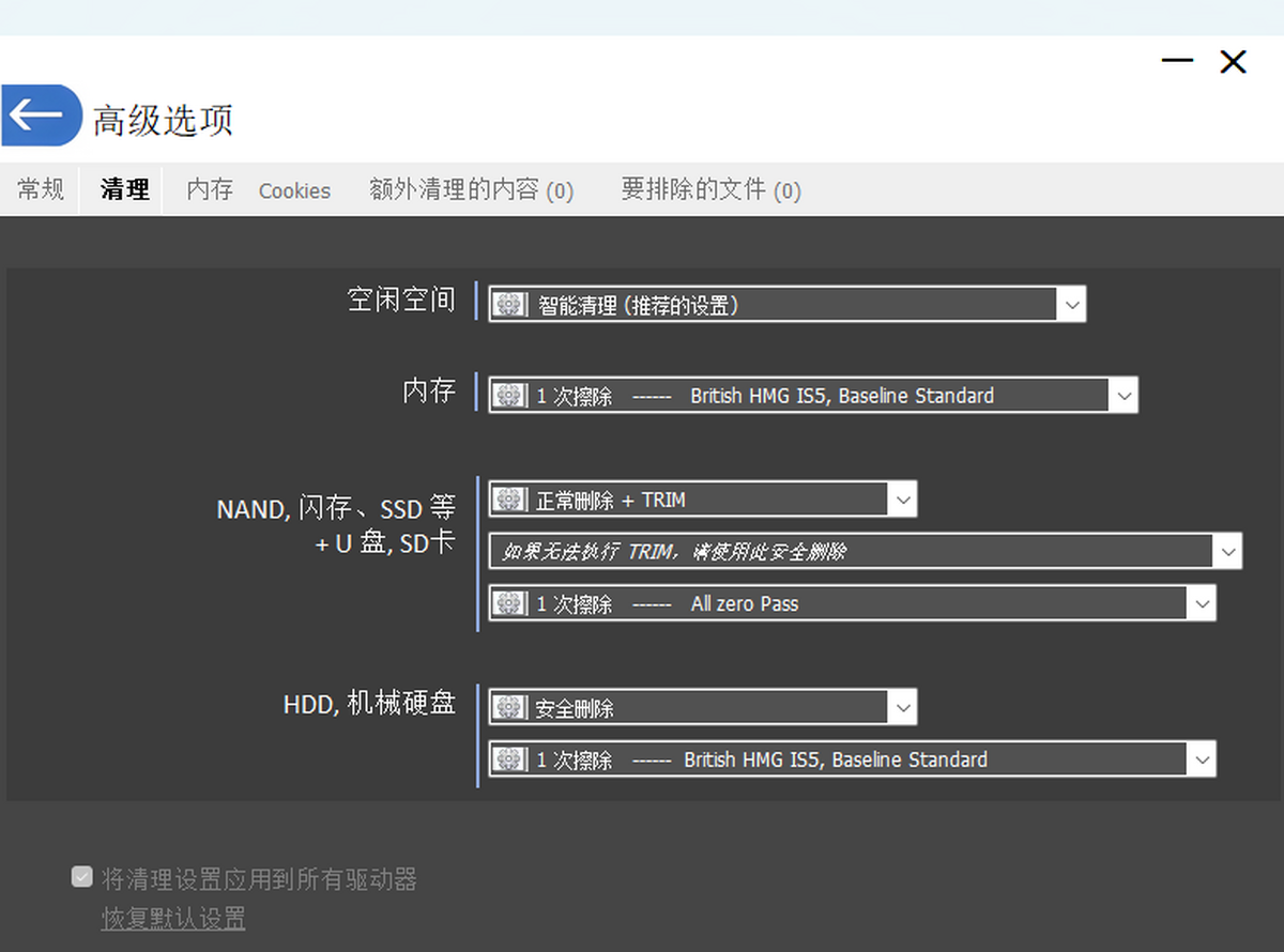 1、支持计算机硬盘、内置存储器、外置存储器、U盘、iPod、MP3播放器、SD记忆卡、网络存储、NAS等多种设备的痕迹清理。