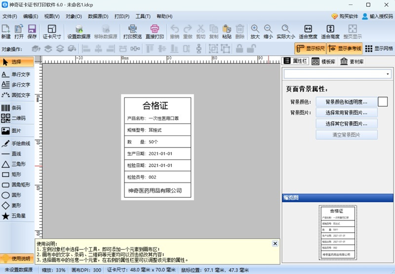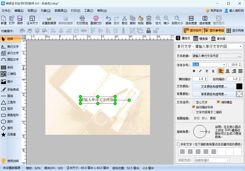 神奇证卡证书打印软件最新版是款十分优秀且功能实用的证卡证书制作打印软件。神奇证卡证书打印软件最新版界面简洁直观、极易上手操作。神奇证卡证书打印软件官方版还支持文字编辑、多种类型条码、二维码(可自定义内容、支持生成微信公众号二维码)、自定义图片、多种图形、矢量图标、行业标志等。