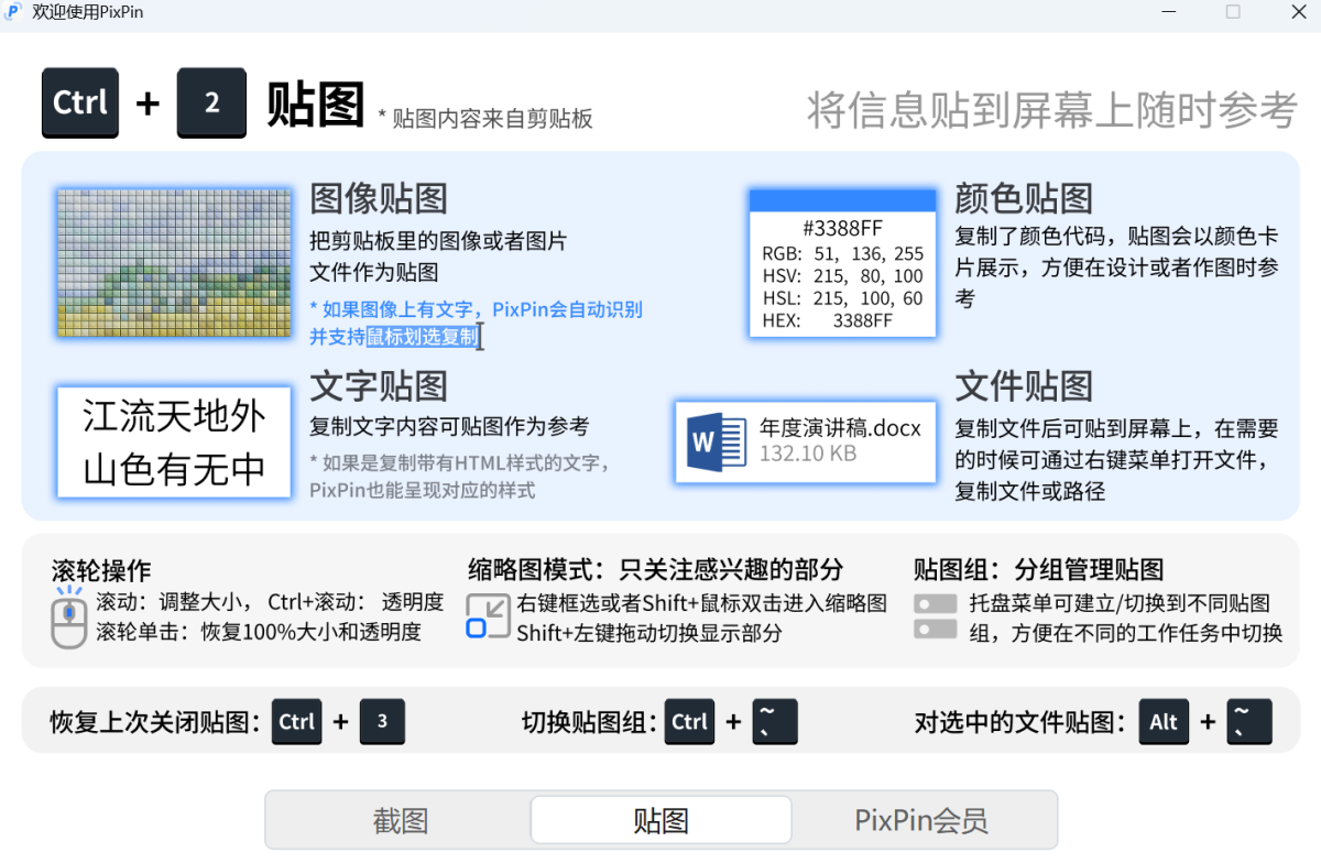 使用 PixPin 将剪贴板中的图片、文字、文件和颜色代码像便签一样贴在屏幕上,方便随时查看参考。