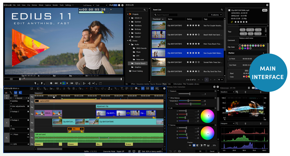GV资源浏览器是 EDIUS 的一项新增功能,它可让你轻松管理所有视频、音频、图片素材,是为在 EDIUS 中进行编辑做足准备便利工具。