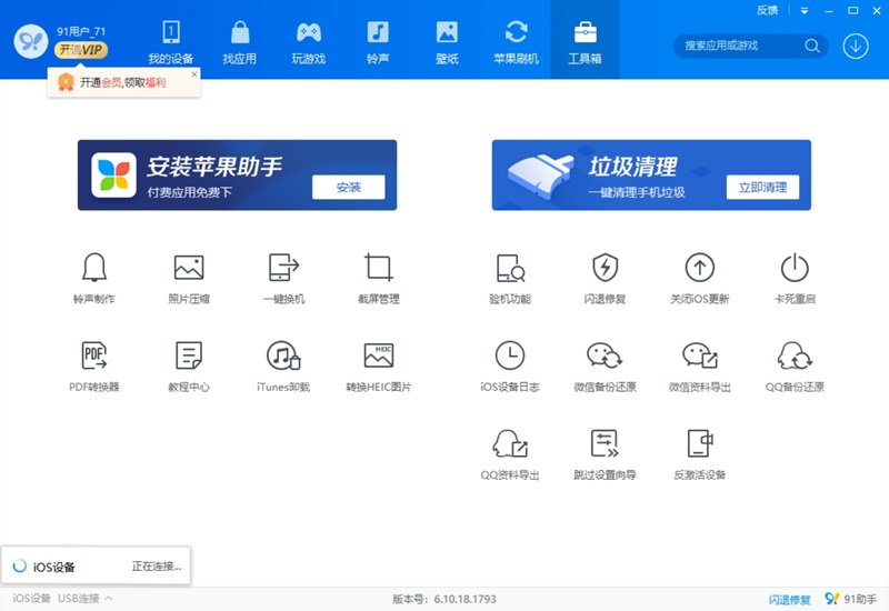 91助手V6是一个跨终端、跨平台的多功能的手机管理平台。全新打造的手机体检功能,实现手机空间优化、垃圾清理、手机降温等功能,一键轻松解决手机问题,同时还提供备份数据、管理文件、照片压缩、通讯录管理、铃声制作等实用性工具,更支持近百万款游戏和应用、千万款壁纸、主题、音乐铃声等资源的下载。