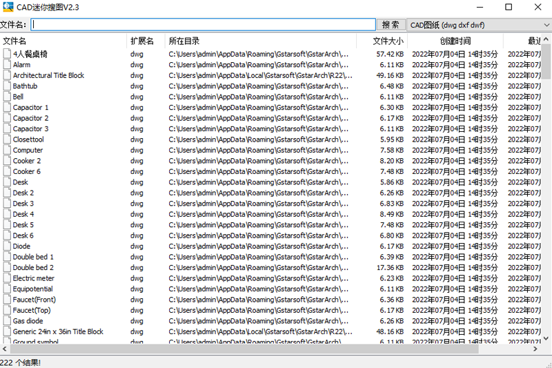 CAD迷你搜图是一款cad瞬间搜图工具,只要输入图片的关键字,即刻展现相关的CAD文件,可自由选择搜索文档、图片、音乐、视频等!极大地方便了我们使用CAD。如图:在文件名那里输入关键字,然后选择文档,点击搜索,即搜索出了结果。